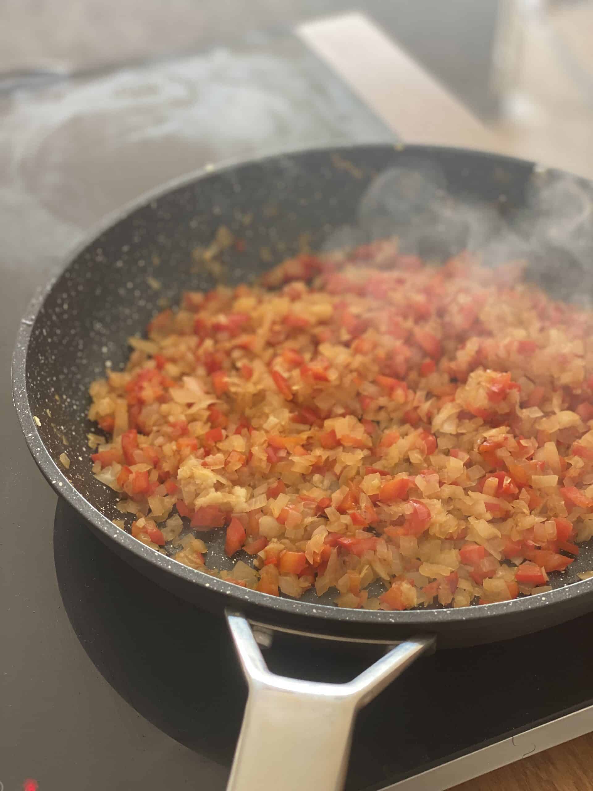 - מוסיפים את הבשר הטחון ומפוררים אותו עם הלקקן. מערבבבים עד לקבל צבע חום. מוסיפים תוך כדי אורגנו, כמון ופימנטון מבשלים עוד 5-10 דק׳. טועמים ומוסיפים פלפל שחור ובהתאם מלח/ תבלינים. מצננים במקרר.