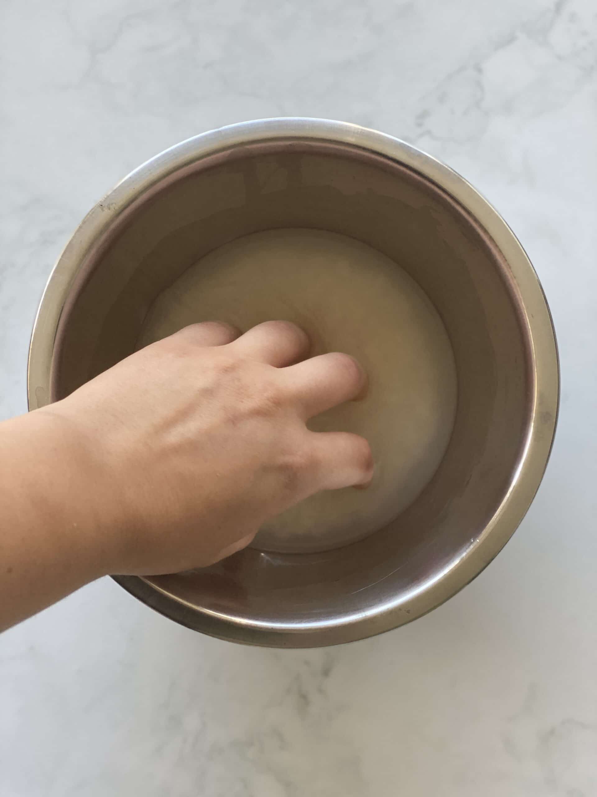- שמים את האורז בקערה, שוטפים אותו במים, מערבבים עם היד ומסננים. שימו לב שבכל השריה העמילן יצא והמים יהיו עכורים. בערך בפעם החמישית או השישית המים יהיו יותר צלולים