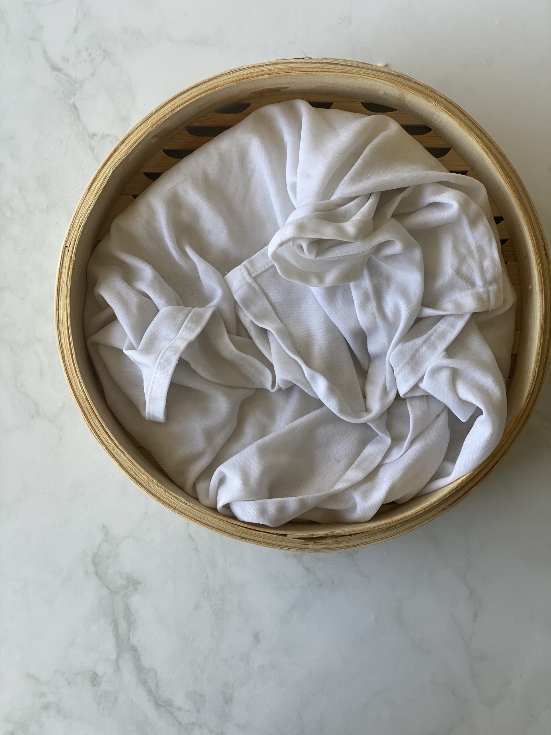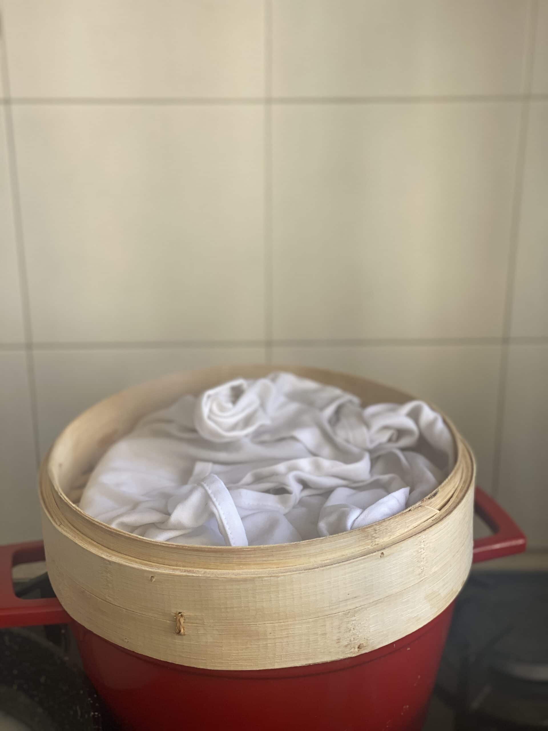 - מסדרים את הבד בתוך מאדה במבוק ועושים חור במרכז, שימו לב לא להתפרס יותר מדי אבל גם לא להעמיס יותר מדי. עוטפים ומכסים עם הבד את האורז באופן מלא.