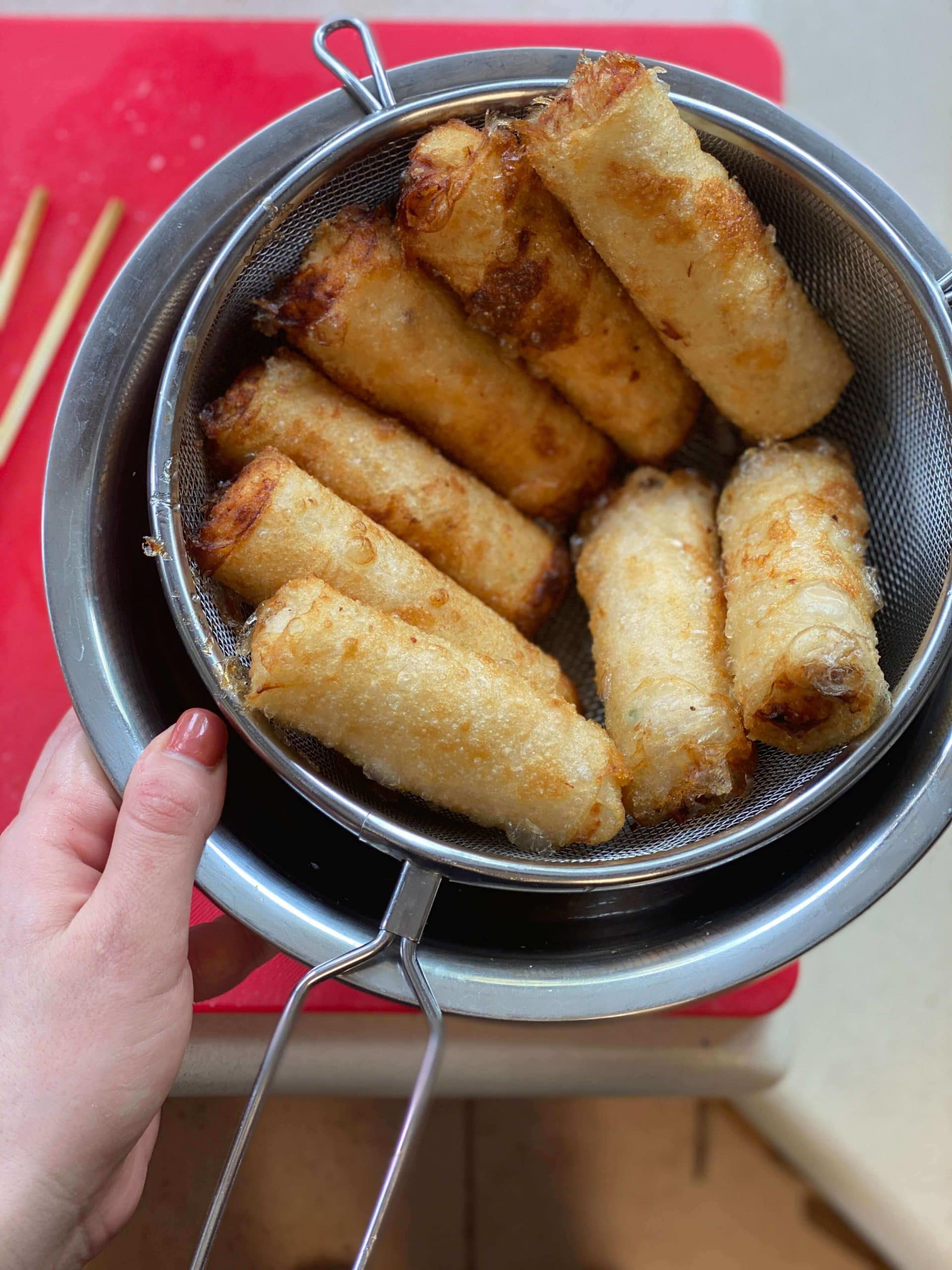 - מחממים שמן בסיר(לא חם מידי ולא קר מידי) כדי שהספרינג רול לא יתפוצץ אבל גם לא ייספג בשמן.