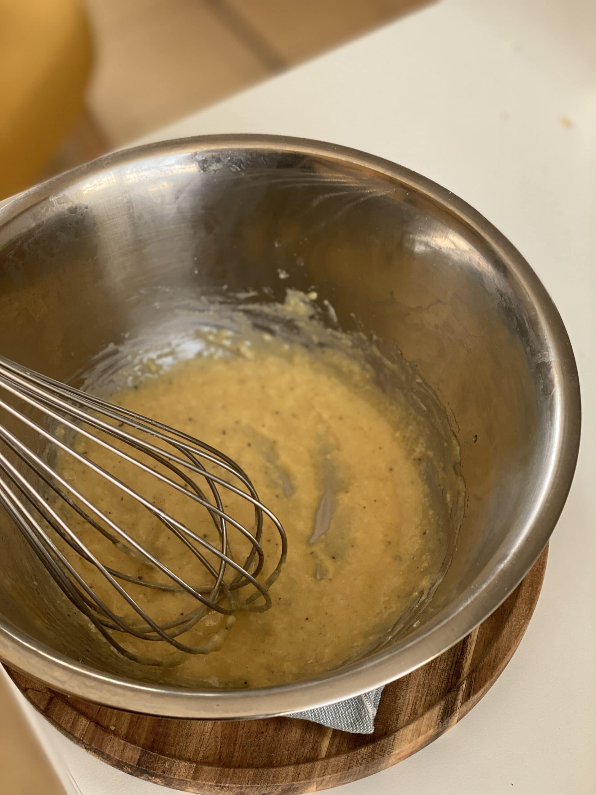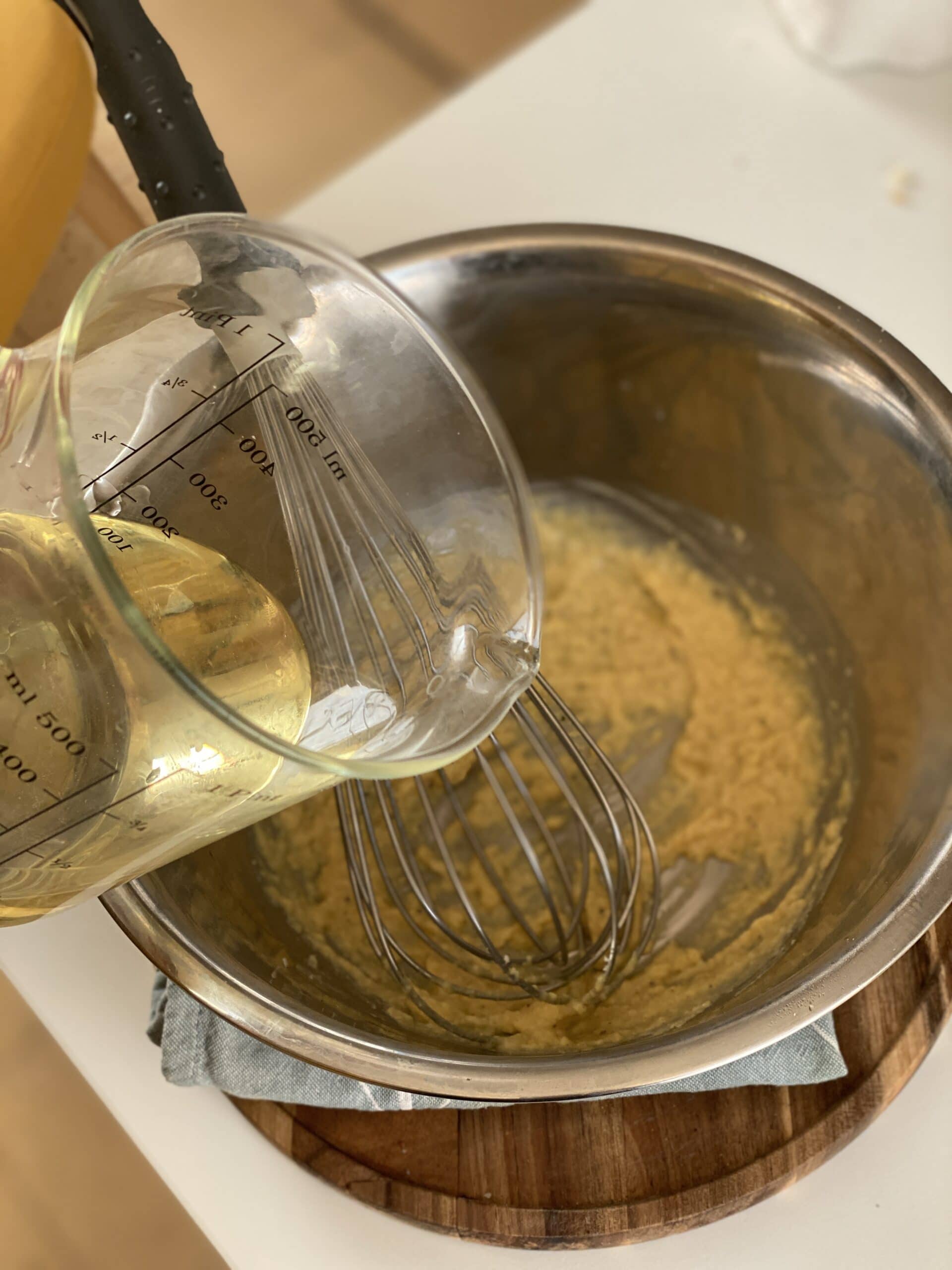 - מזלפים תוך כדי שימוש במטרפה את השמן באיטיות כדי שהויניגרט לא יישבר.