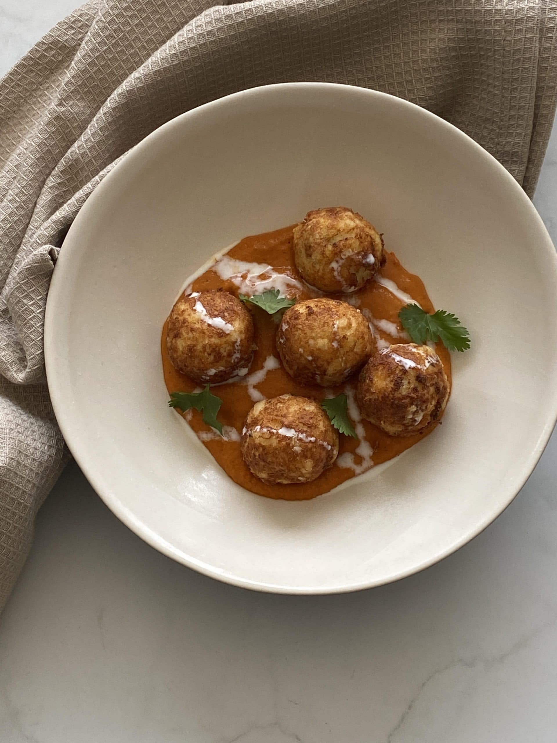 איך מכינים כדורי גבינת פאניר ותפו"א ממולאים כוסברה וקשיו ברוטב עגבניות גרייבי הודי