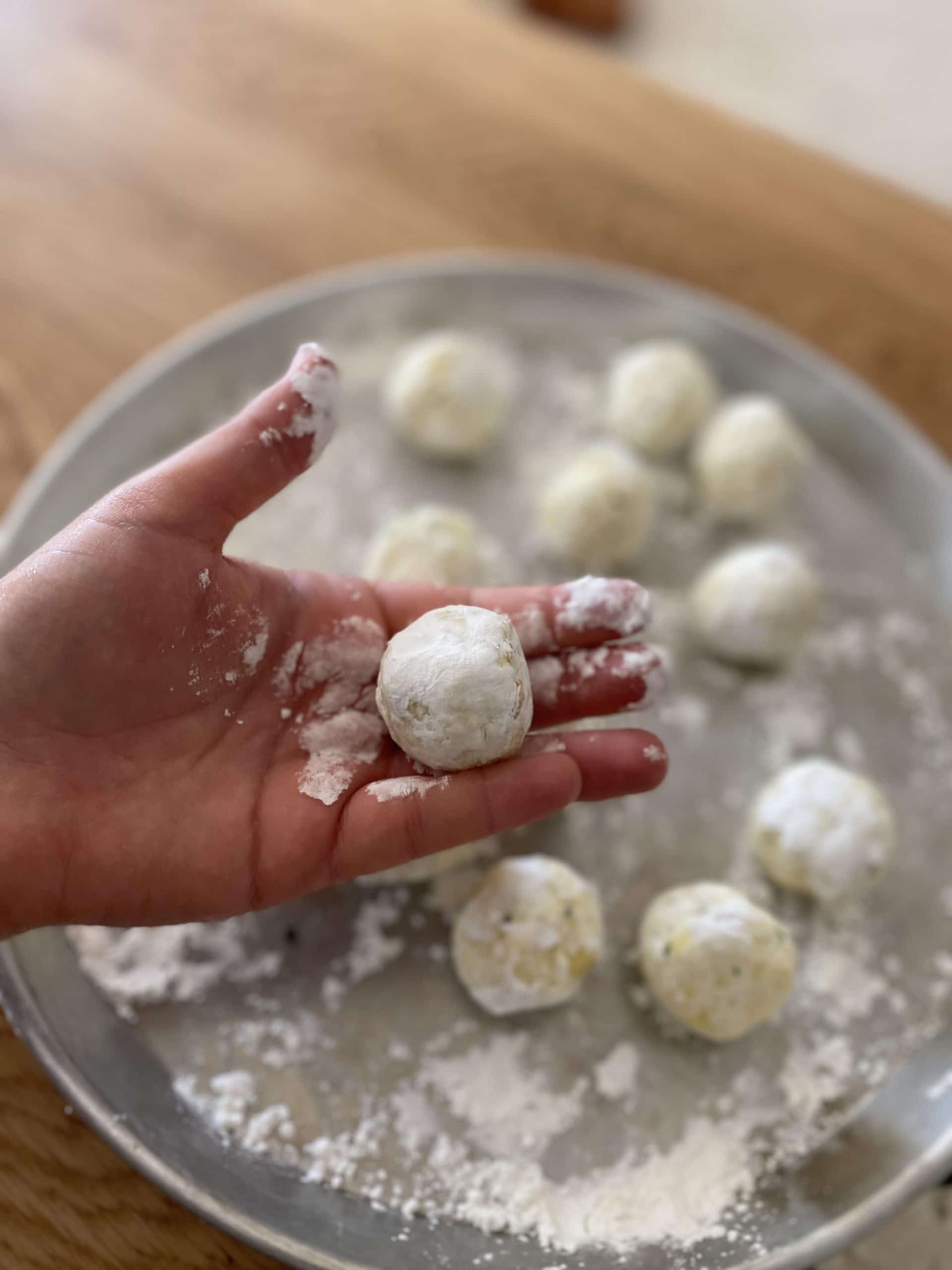 3. את הכדורים מערבבים עם קורנפלור מבחוץ.