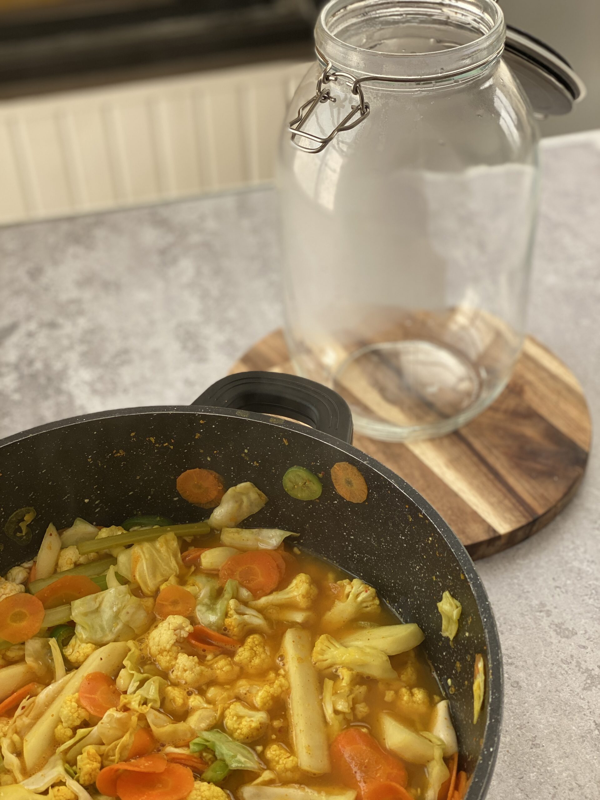 - מערבבים את הנוזל עם הירקות שהם נצבעים בעדינות. מכבים את האש, מחכים שיתקרר ומעבירים לצנצנת מעוקרת. שומרים במקרר. ניתן לאכול אחרי 24 שעות. בתיאבון